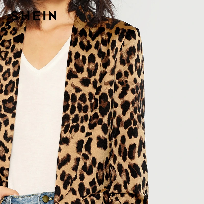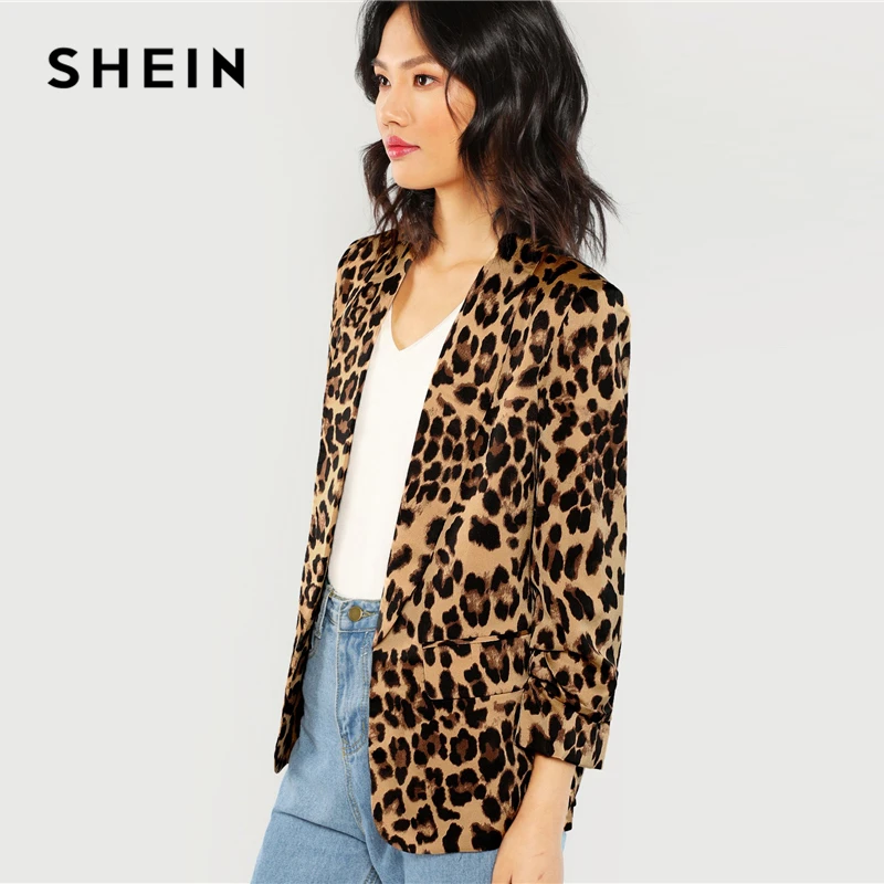 Special Offer SHEIN multicolore col châle froncé manches léopard Blazer élégant décontracté 3 4 manches survêtement femmes Highstreet automne manteau Discount 40% Today!