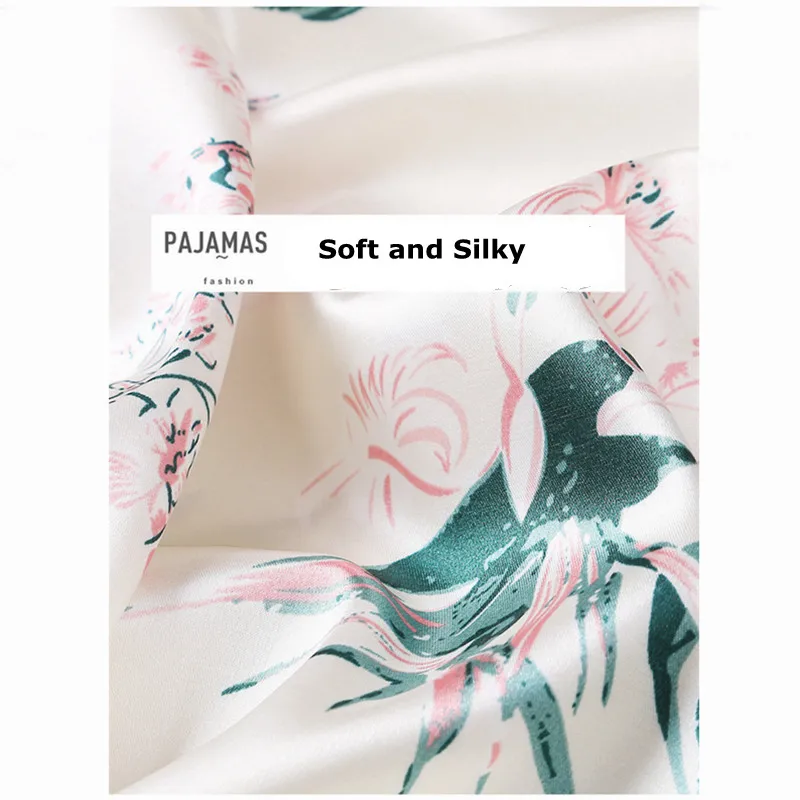 Special Offer JULY S SONG 2019 femmes 7 pièces pyjamas ensembles tache Faux soie pyjamas femmes ensembles de vêtements de nuit automne hiver hauts + Shorts + chemise + pantalon Discount 42% Today!