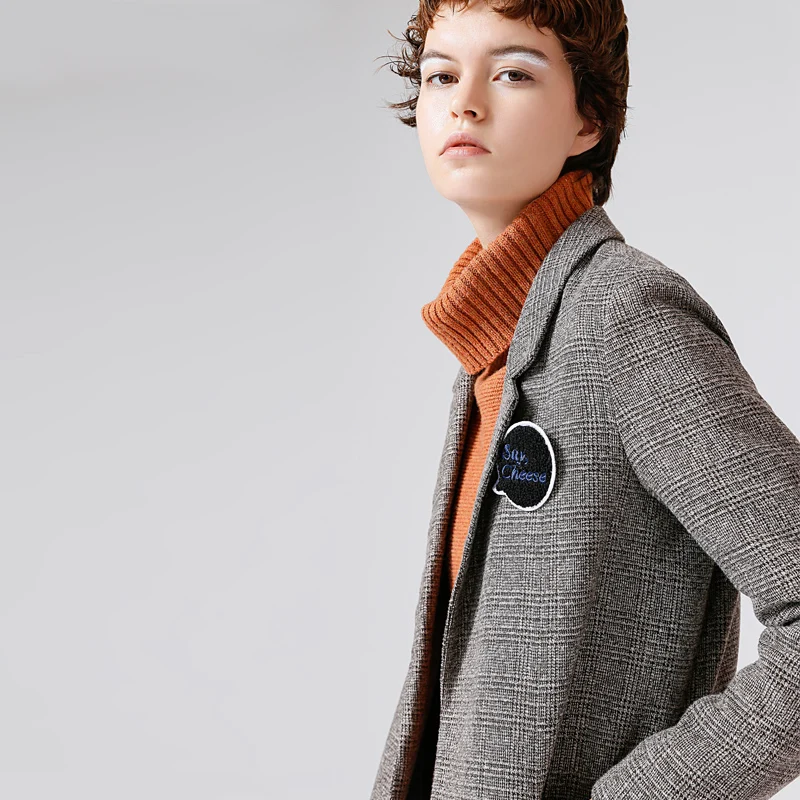 Special Offer Toyouth Vintage Plaid Blazer col rabattu un bouton à manches longues manteau vêtements d extérieur décontractés Casaco Femi femmes Blazers et vestes Discount 62% Today!
