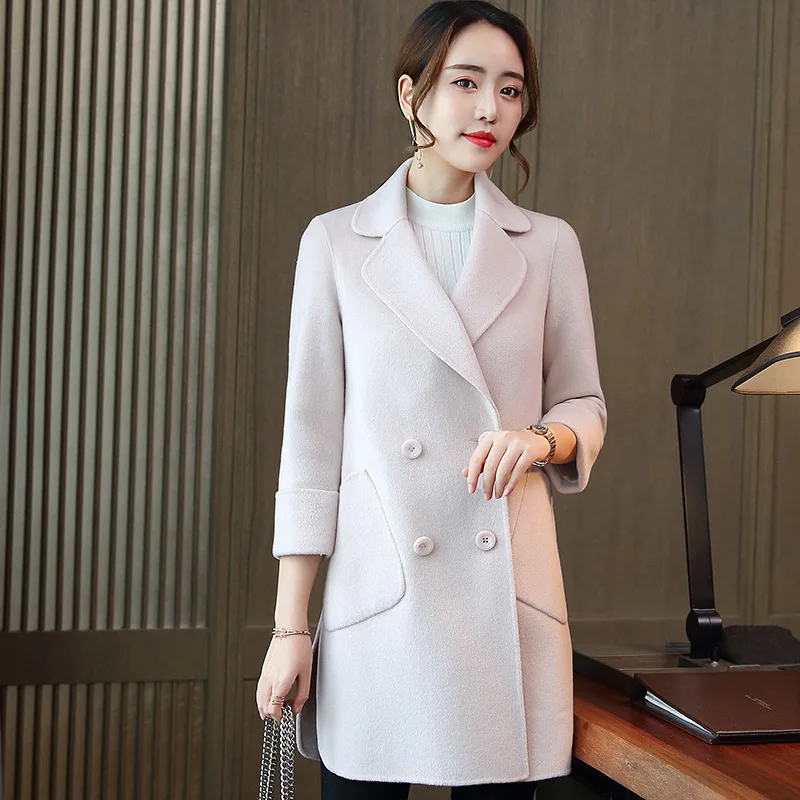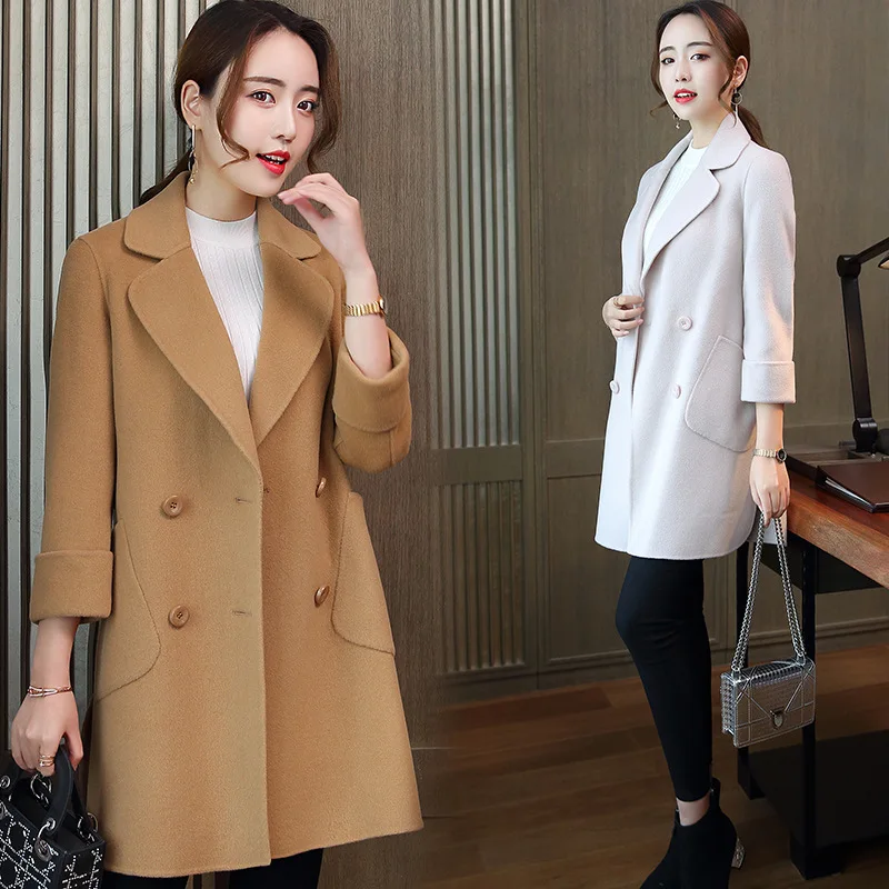 Special Offer Manteau en laine 2019 Nouveau Double Boutonnage À Manches Longues Automne et Hiver Manteaux Col V A ligne décontracté Tempérament Manteau En Laine Discount 0% Today!