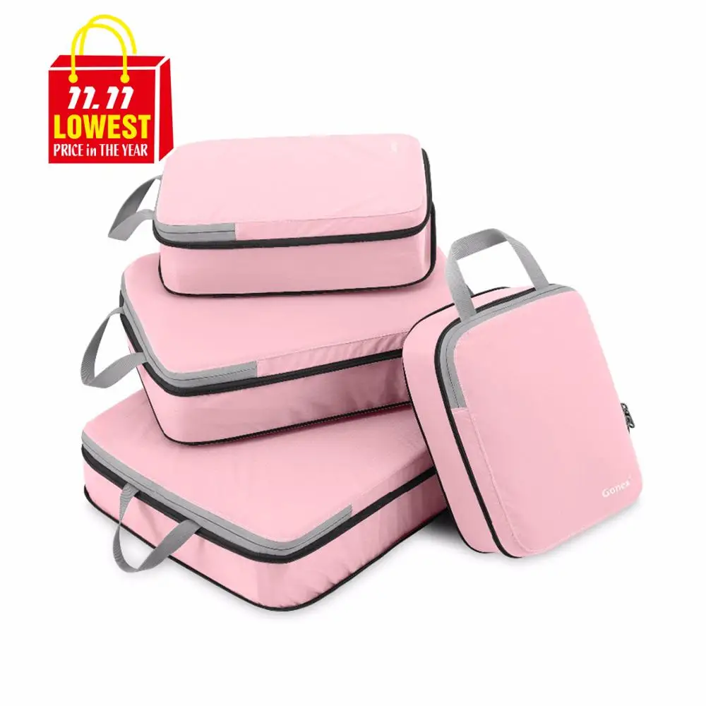 Special Offer Gonex 4 pièces ensemble valise de voyage organisateur de bagages suspendus Ziplock sac de rangement vêtements Compression emballage Cubes fille ami cadeau Discount 10% Today!