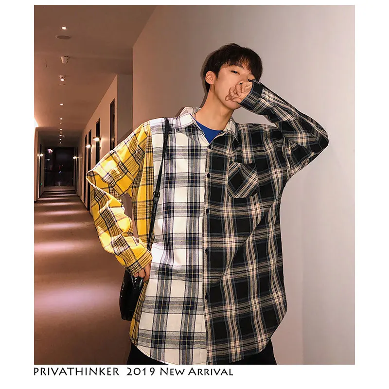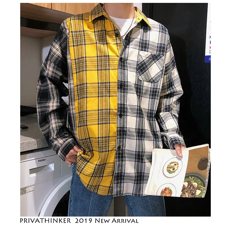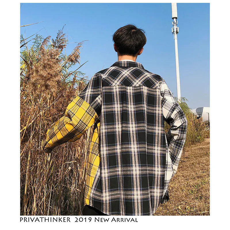 Special Offer Privathinker coréen chemises à carreaux pour hommes 2019 mode Patchwork à manches longues chemise décontracté Hip Hop Streetwear homme Blouse Discount 30% Today!