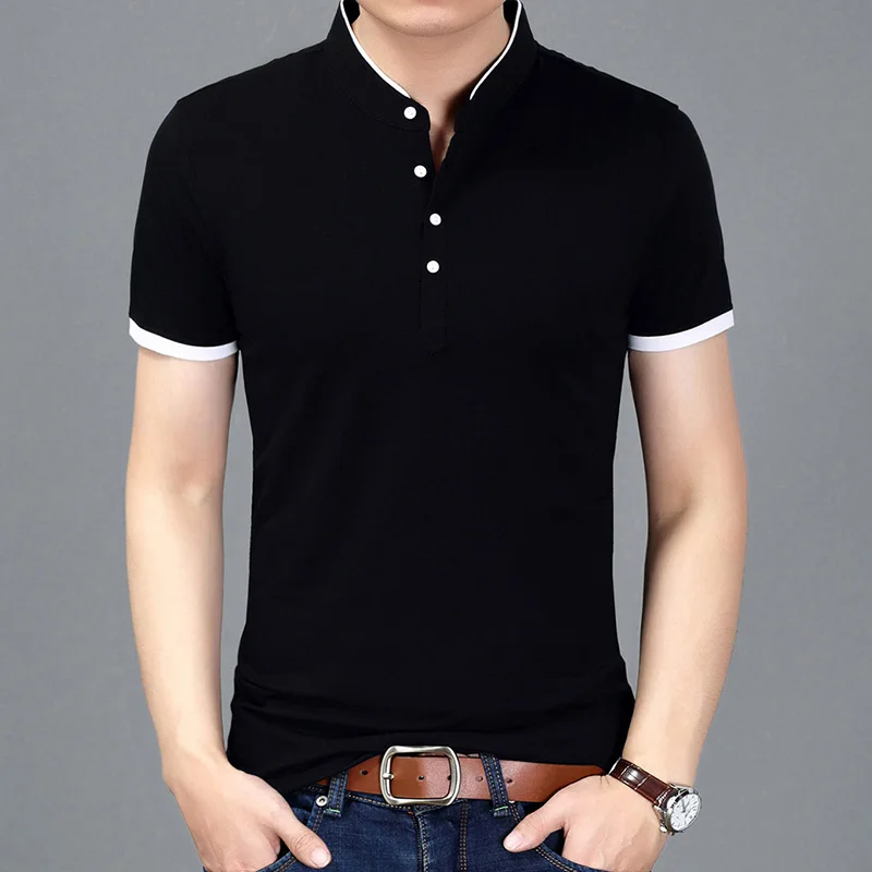 Special Offer 2019 été nouvelle marque de mode vêtements t shirt hommes couleur unie coupe ajustée à manches courtes t shirt hommes col Mandarin décontracté T Shirts Discount 40% Today!