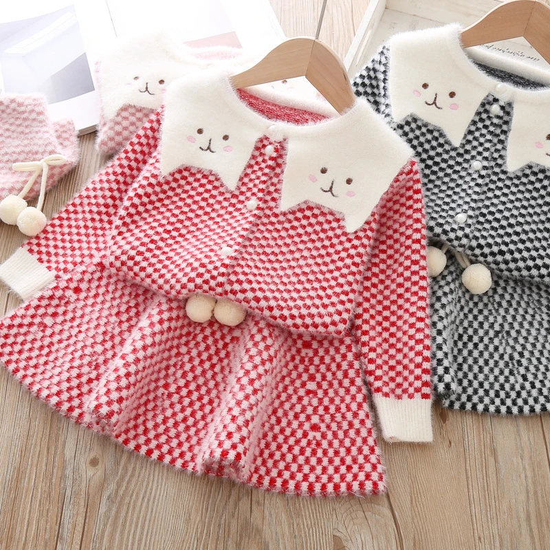 Special Offer Costume pour enfants 2019 automne nouvelles filles coréennes mignon poupée béret chemise en peluche Plaid jupe filles deux pièces hiver chaud pull ensemble Discount 45% Today!