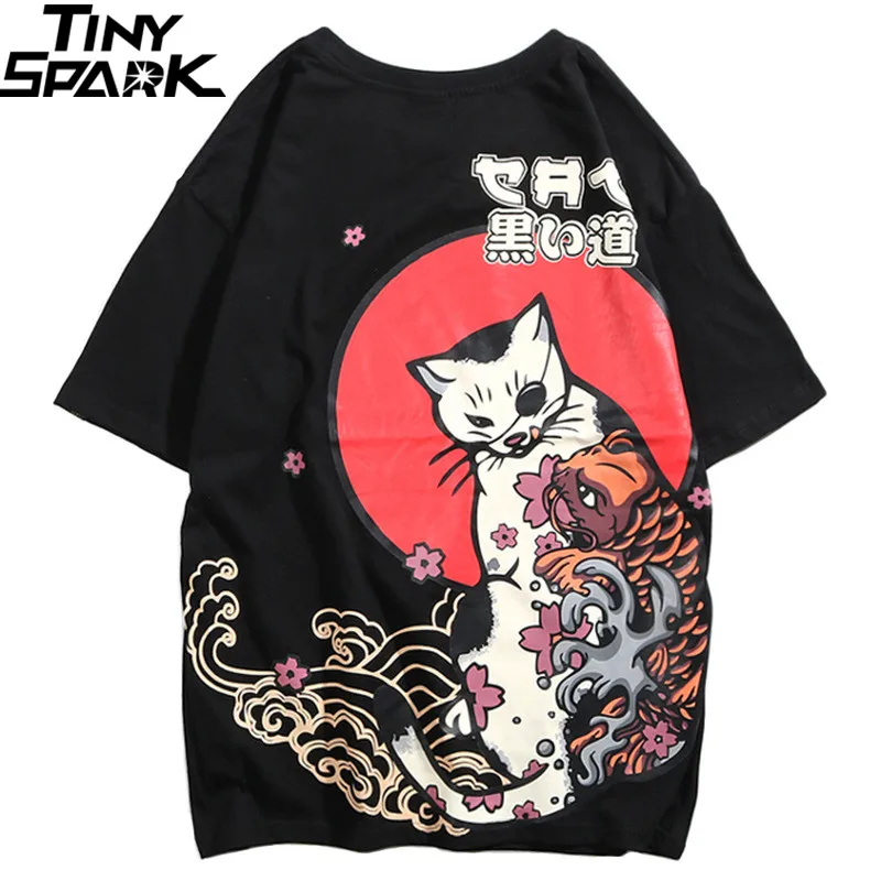 Special Offer 2019 Hip Hop T shirt hommes japonais Ukiyo E chat T shirt Harajuku Streetwear T shirt décontracté à manches courtes été hauts T shirt japon Style Discount 46% Today!