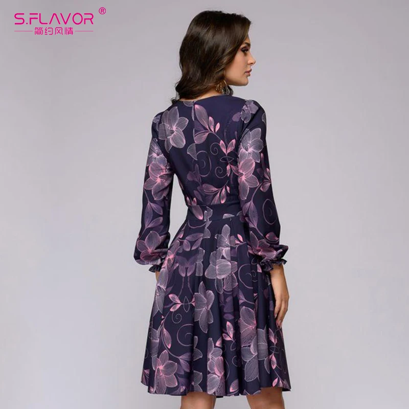 Special Offer S. Saveur femmes impression a ligne robe élégante couleur pourpre volants à manches longues robe courte nouveau automne hiver vintage vestidos Discount 47% Today!
