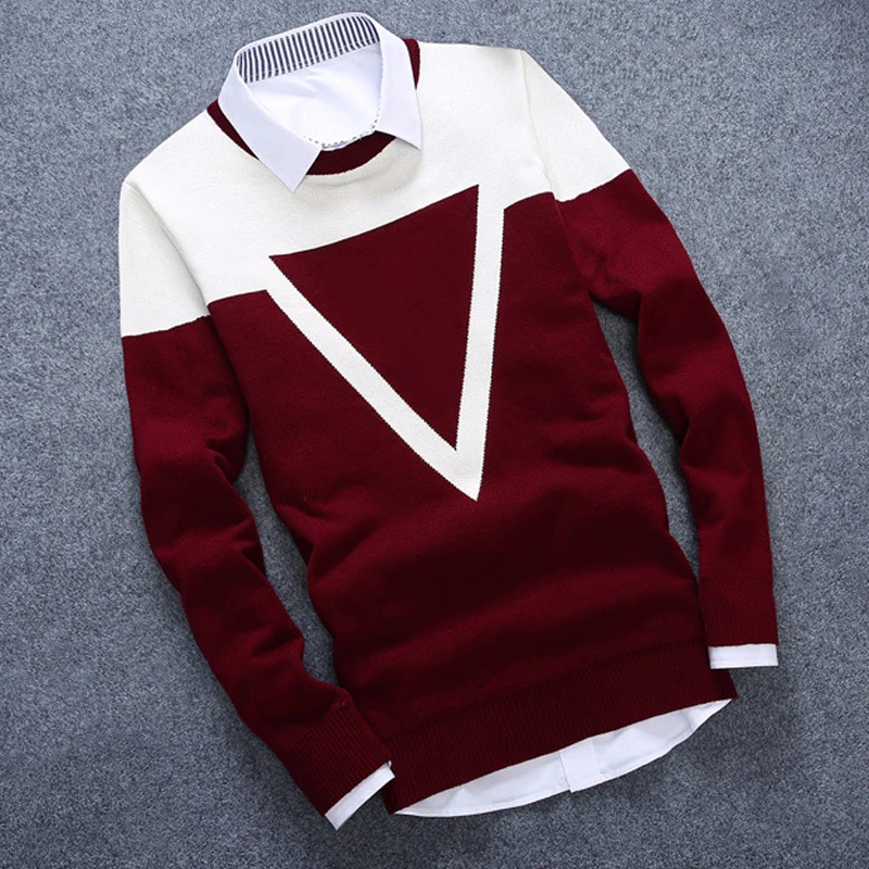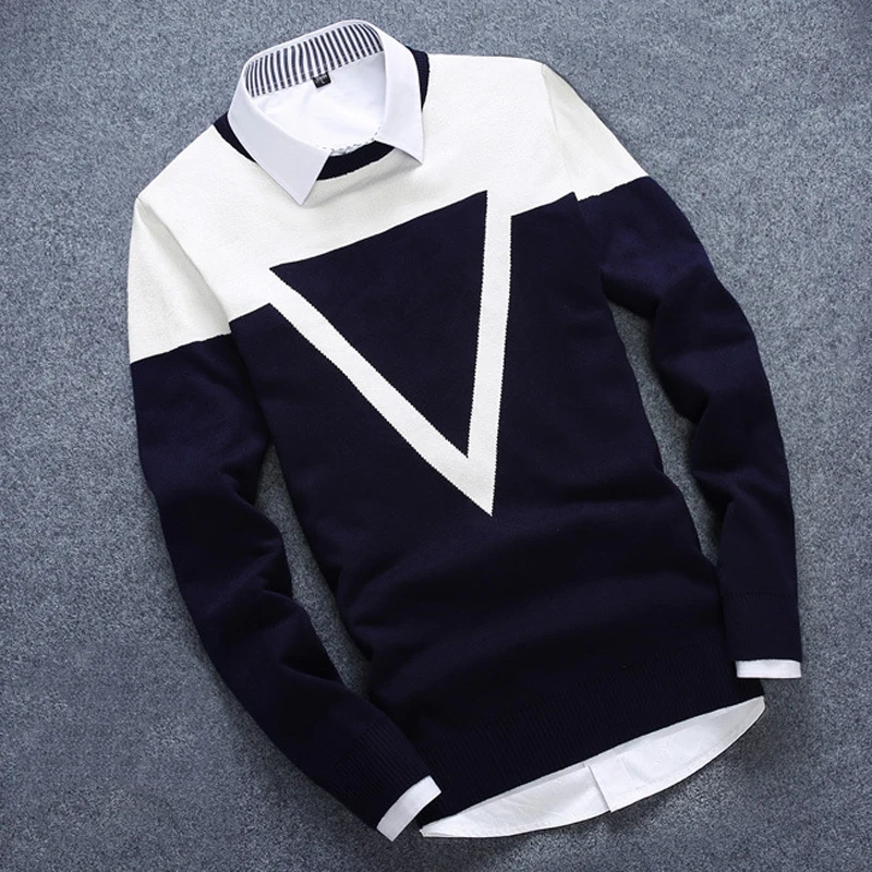 Special Offer Nouveau tricoté Homme Pull Triangle mode hommes décontracté coton automne hommes chandails faux col de chemise garder au chaud hiver Pull Homme Discount 25% Today!