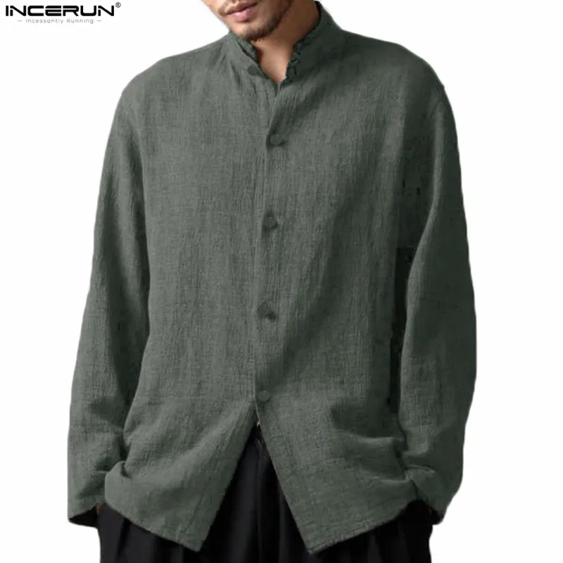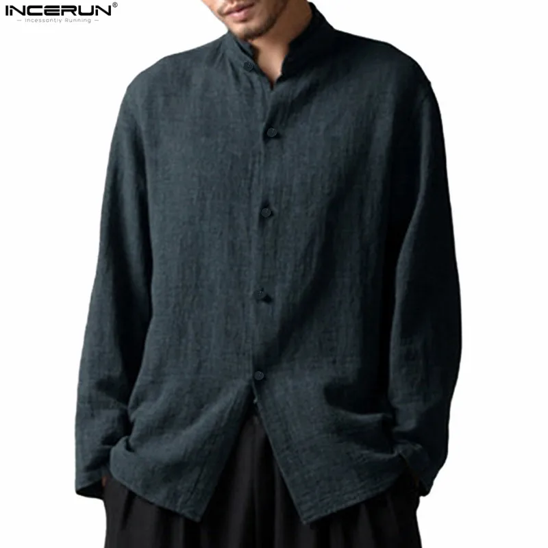 Special Offer Style chinois col montant à manches longues chemises en lin hommes chemise Vintage décontracté lâche hommes chemise camisa Social camisa masculina Discount 26% Today!