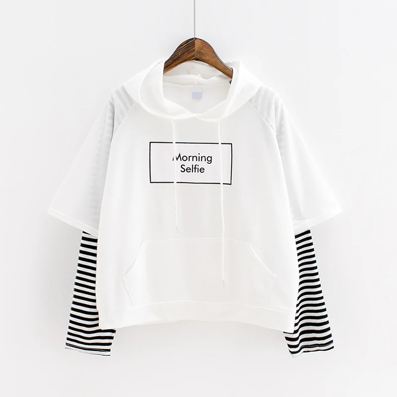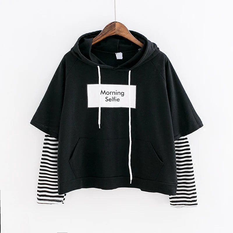 Special Offer Kpop Nouveau Automne Femmes Sweat Mode Rayé sweat shirt à badge Patché Manches décontracté À Capuche Coton Printemps Kpop Harajuku EXO Vêtements Discount 29% Today!