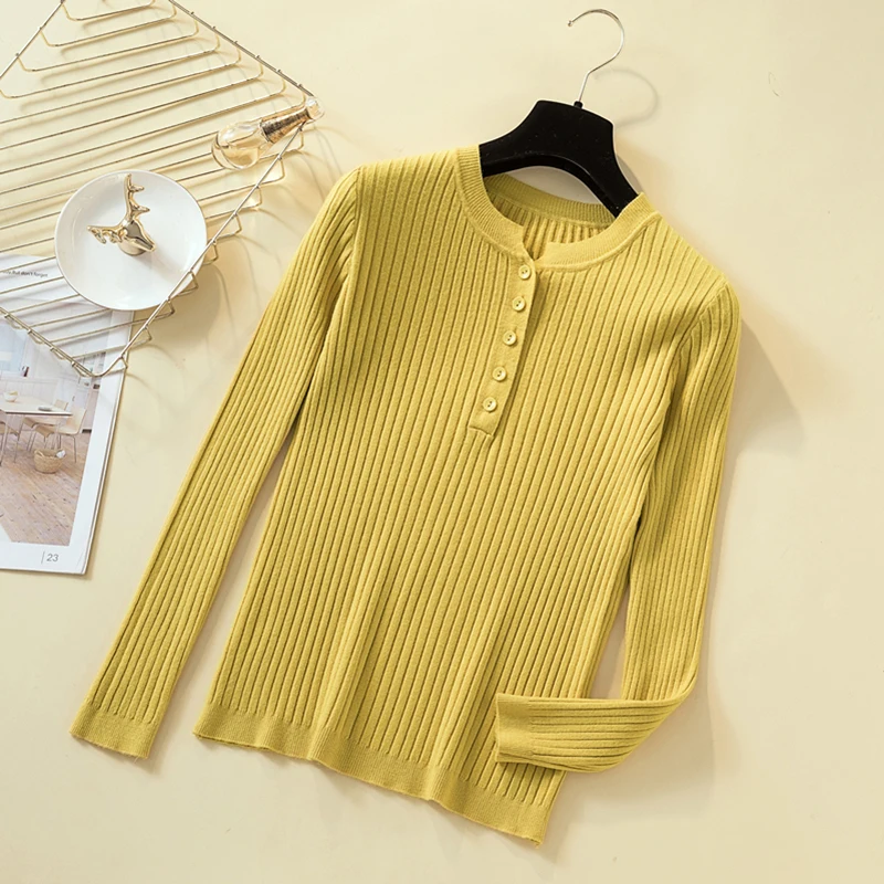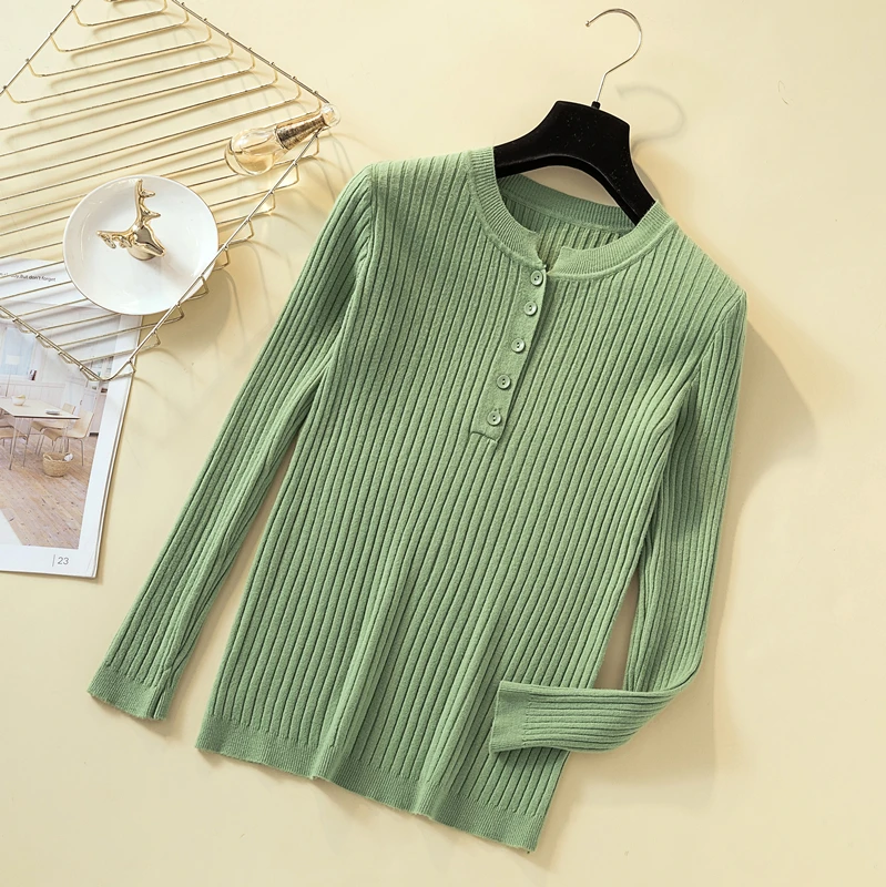 Special Offer Automne hiver nouveau à manches longues mode pull mince femmes nouveau pull à manches longues col rond couture bouton pull Discount 30% Today!