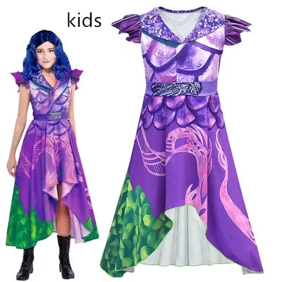 Special Offer Fantaisie Descendants 3 Costumes Cosplay femmes robe filles violet à manches courtes robes mascarade vêtements Discount 30% Today!