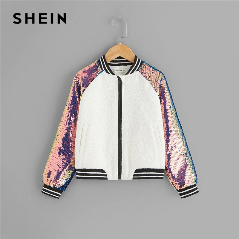 Special Offer SHEIN Kiddie Sequin Raglan manches Zipper Slogan lettre imprimer filles veste manteau enfants vêtements 2019 printemps décontracté veste pour enfants Discount 40% Today!
