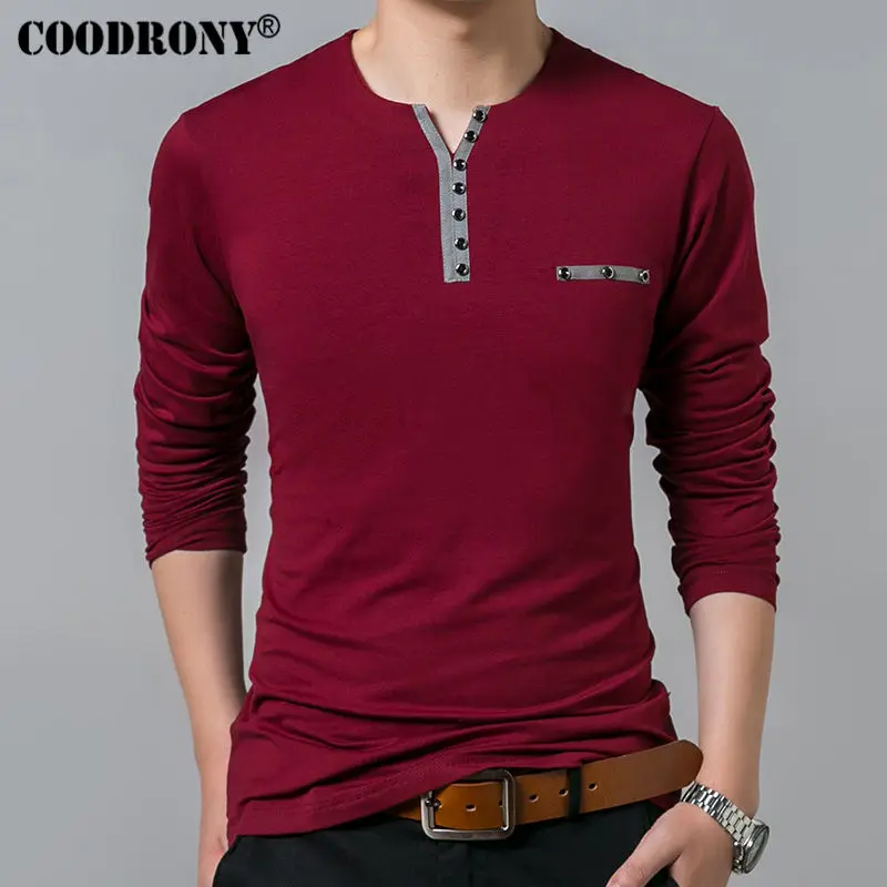 Special Offer COODRONY coton T Shirt hommes 2019 printemps automne nouveau à manches longues T Shirt hommes Henry col T Shirt hommes mode décontracté hauts 7617 Discount 45% Today!