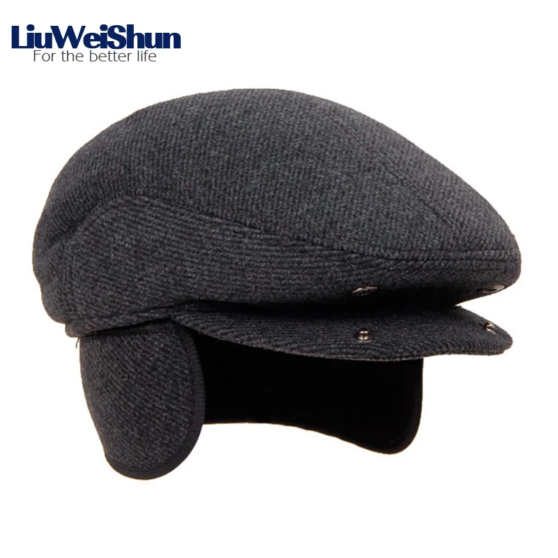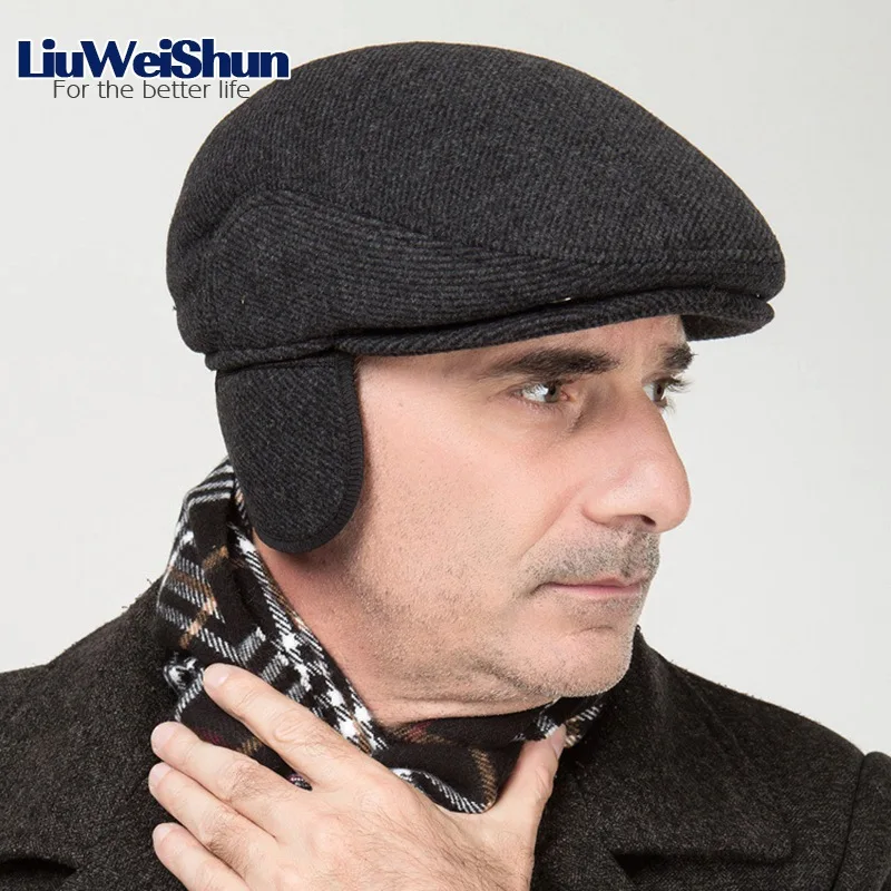 . (49% Off) Vente Chapeau de béret mâle en laine d hiver avec oreillette pour hommes, casquette plate Vintage en Tweed pour gavroche, chapeau plat à carreaux de neige chaud russe Boina Pas Cher Prix.