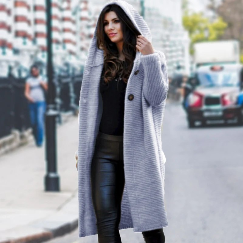 Special Offer Long Cardigan femmes automne hiver solide surdimensionné à capuche Cardigans femme garder au chaud pull laine ample tricoté manteau Discount 49% Today!