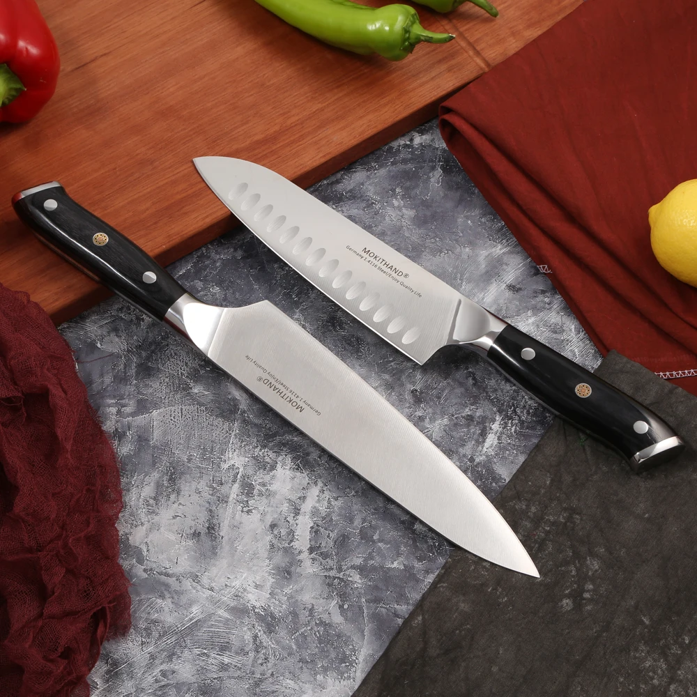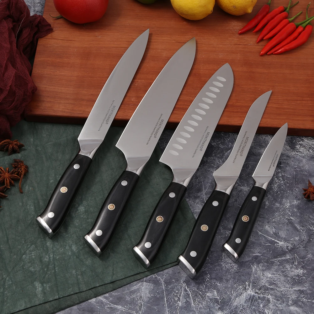 . (53% Off) Vente Couteaux de cuisine japonais 8 pouces couteau de Chef ensemble allemagne 1.4116 acier à haute teneur en carbone Santoku pêche couteau de cuisine pointu fait à la main Pas Cher En Ligne.