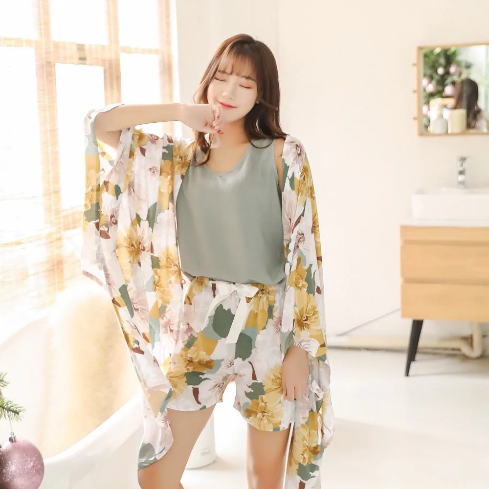 Special Offer Printemps automne femmes Pyjamas vêtements 4 pièces ensembles Pyjamas femmes ensembles chemise de nuit ensemble de vêtements de nuit loisirs fleur pijamas maison porter Discount 34% Today!