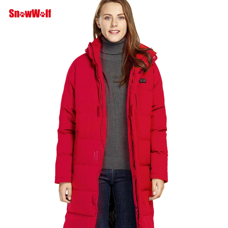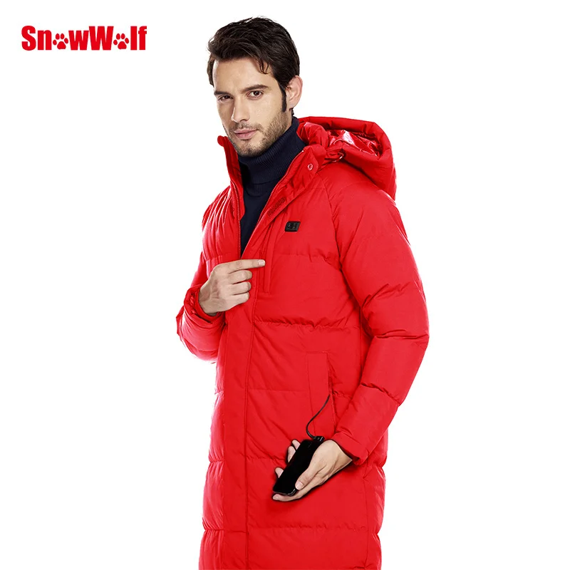 Special Offer SNOWWOLF 2019 hommes femmes USB chauffé veste hiver en plein air amoureux longue à capuche chauffage manteau électrique thermique vêtements pour la randonnée Discount 36% Today!