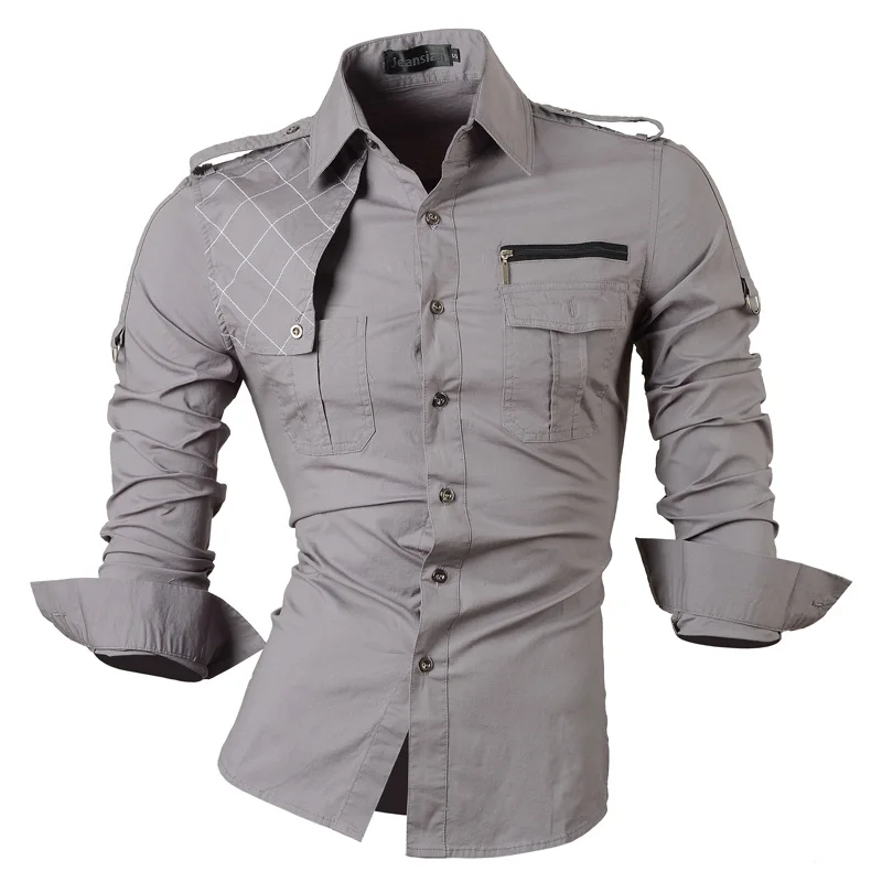 Special Offer Jeansian hommes à manches longues robe chemises décontractées Slim Fit mode élégant Designer militaire 8371 Discount 44% Today!