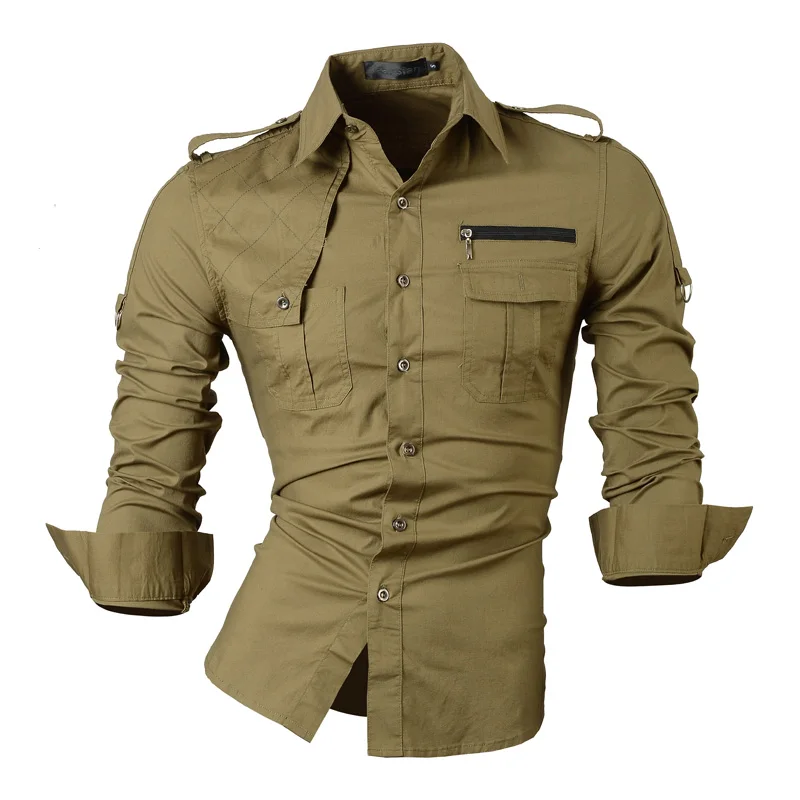 . (44% Off) Achat Jeansian hommes à manches longues robe chemises décontractées Slim Fit mode élégant Designer militaire 8371 Pas Cher Prix.